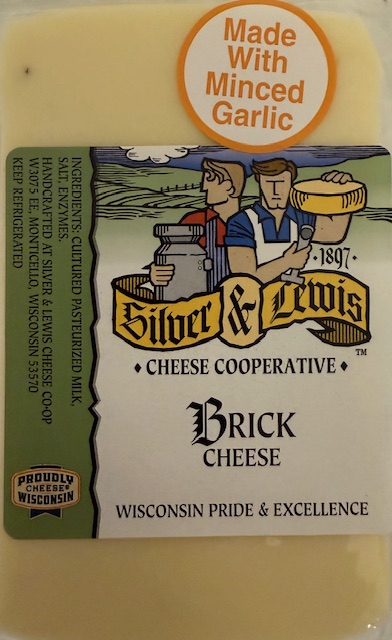 Brick cheese is a Wisconsin original, semi-soft cheese, made from pasteurized cows milk, cheese cultures, salt and enzymes. Minced Garlic and Chives are added. It is named for its brick shape and the bricks originally used to press the curds. When young, it is mild, smooth, and sweet, making it ideal for melting, while aged brick cheese develops a pungent, tangy flavor.!Â